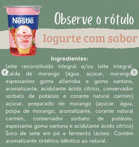 O iogurte é um ótimo alimento e super prático na hora de um lanche prático. MAS, será que todos são saudáveis? Há inúmeros tipos de iogurte á venda no mercado. Os iogurtes com sabor são constituídos de grandes quantidades de açúcar, aromatizantes e corantes. A melhor opção quando se fala em iogurtes são aqueles com o mínimo de ingredientes possíveis (leite e fermento lácteo), como o natural por exemplo, onde você pode adicionar uma fruta natural e bater no liquidificador.